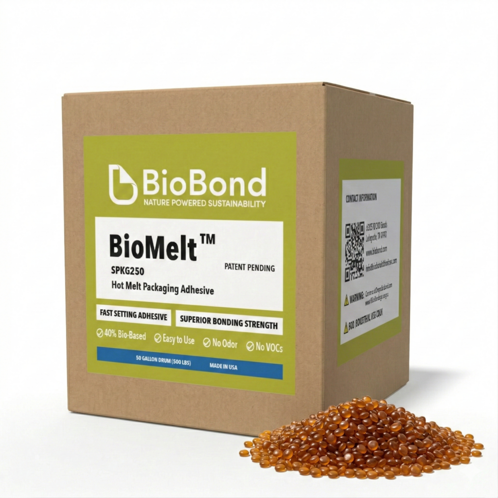 BioMelt™ SPKG250 is optimized for box and carton closure, offering fast set times and dependable adhesion that help maintain throughput and reduce rework. Its USDA BioPreferred® certification reinforces its bio-based content while ensuring compatibility with modern packaging operations focused on efficiency, safety, and consistency.